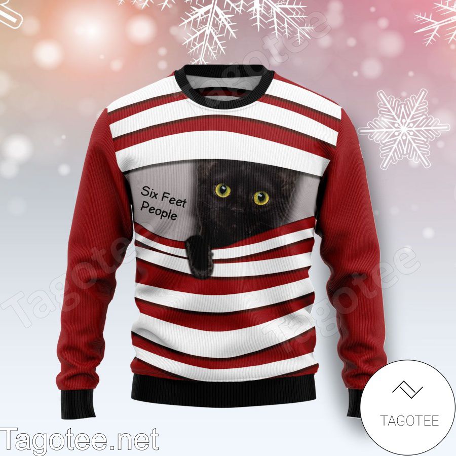Black Cat Six Feet Xmas Ugly Christmas Sweater