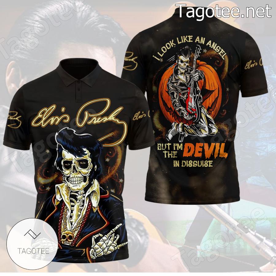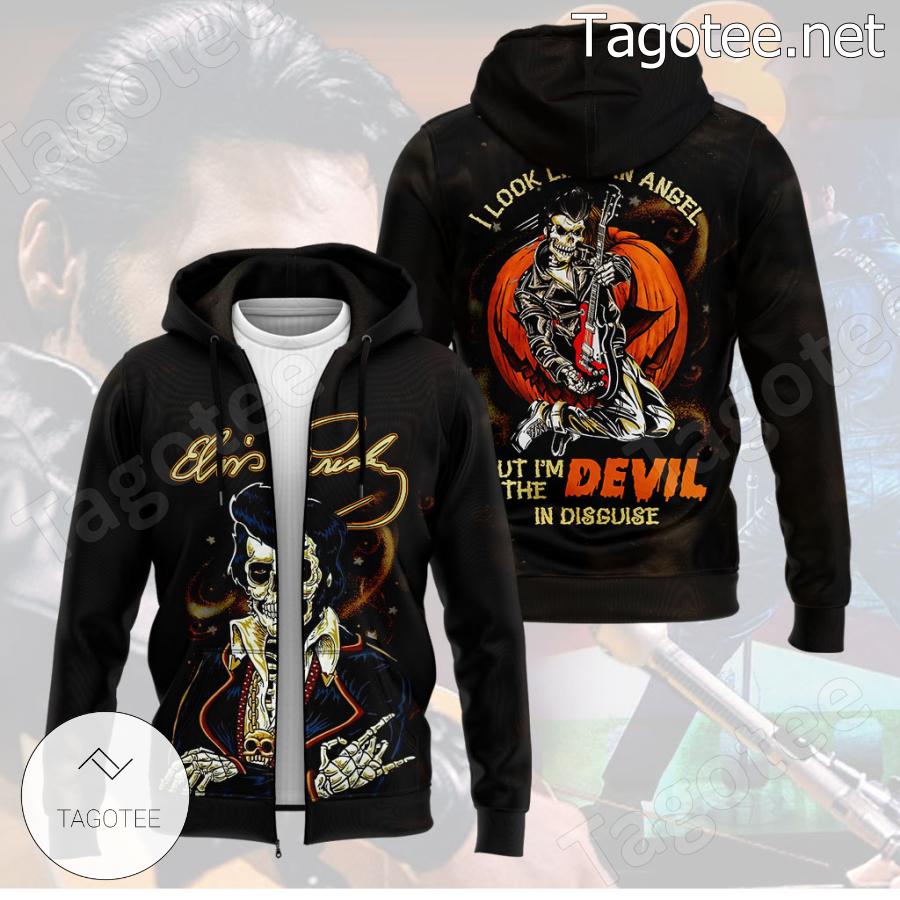 - Elvis Presley I Look Like An Angel But I'm The Devil In Disguise Halloween T-shirt, Hoodie is your go-to top for work, school, casual fashion, and beyond. It’s the perfect complement for practically any business or work dress code, school uniform, and daily wardrobe.