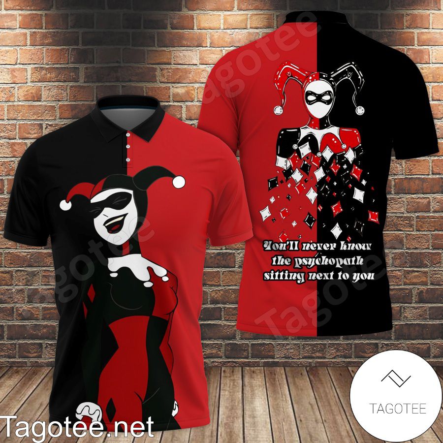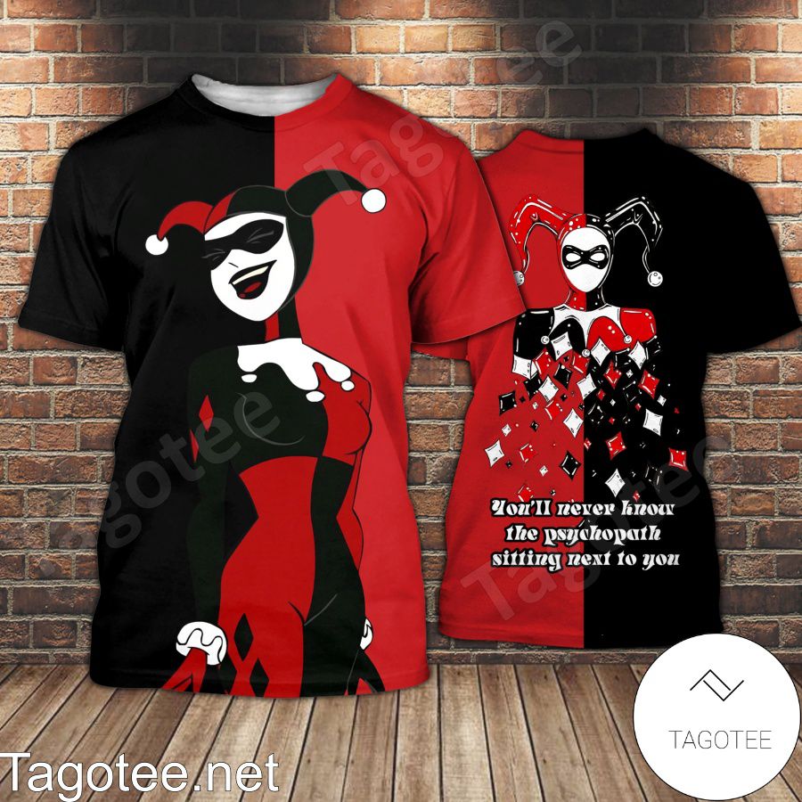 - Harley Quinn You'll Never Know The Psychopath Sitting Next To You Shirt, Tank Top And Leggings is your go-to top for work, school, casual fashion, and beyond. It’s the perfect complement for practically any business or work dress code, school uniform, and daily wardrobe.