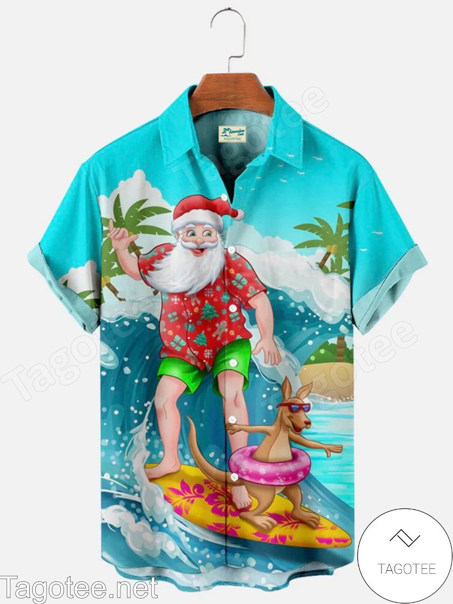 Holiday Santa Beach Surfing Hawaiian Shirt