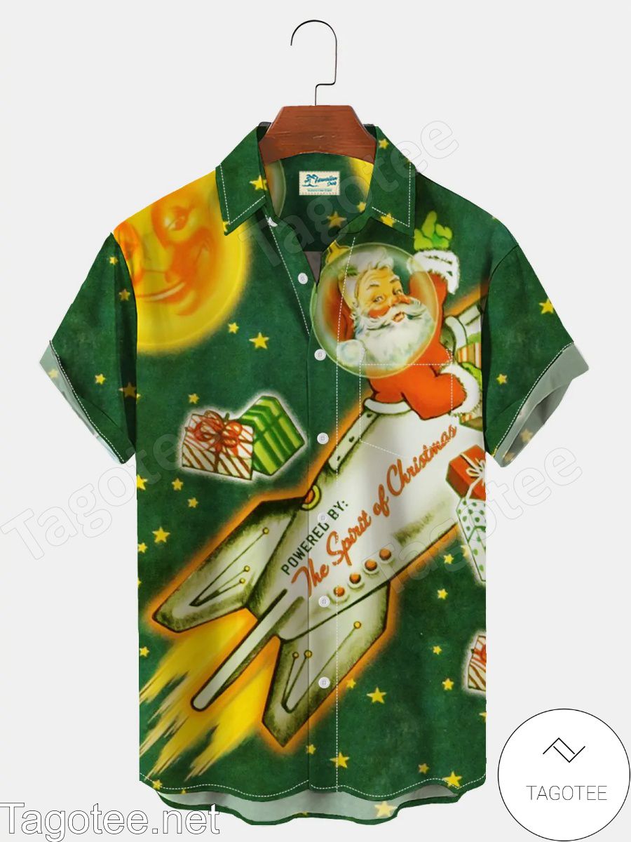 Santa Claus Flying Licence Power By The Spirit Of Christmas Hawaiian Shirt MATERIAL: 100% KATE SILK